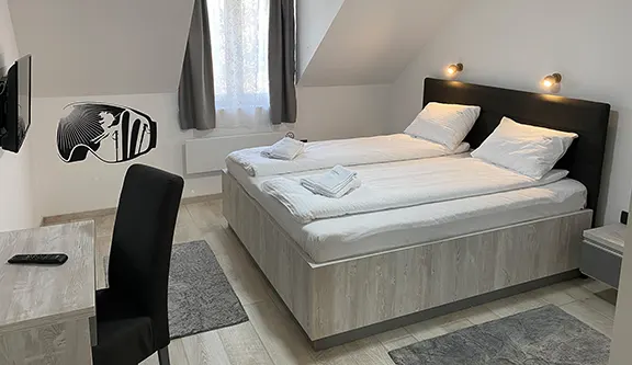 Deluxe studio potpuno nov i savremeno opremljen. Raspolaže velikim bračnim krevetom, trosedom, moderno opremljenom kuhinjom i kupatilom. Idealan za smeštaj četri odrasle osobe, površine 28m², kategorisan sa četiri zvezdice. Sa prelepim pogledom na planinu.