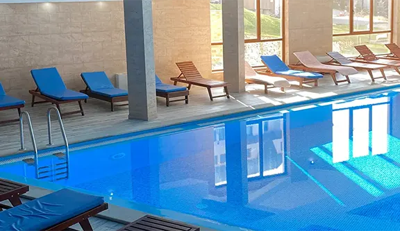 Apartmani su povezani toplom vezom sa spa centrom u okviru kog se nalaze dva bazena, finska sauna, tursko kupatilo, slana soba i tepidarijum.